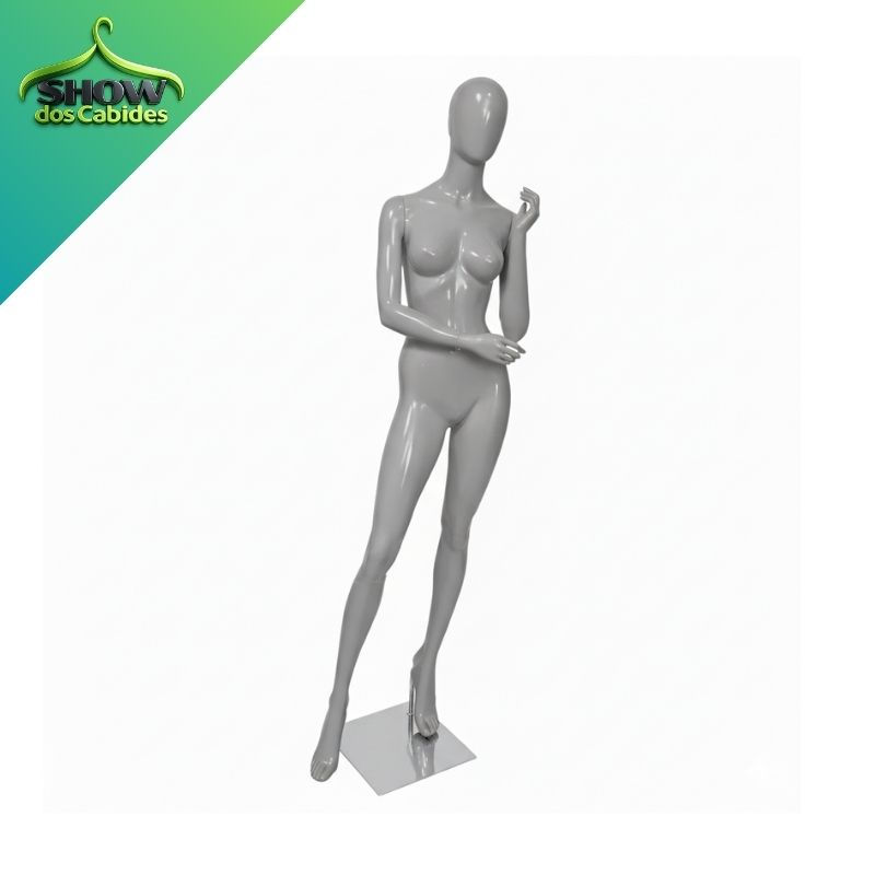 Manequim Feminino de Fibra "Linha Bonita" cor Cinza (cabeça ovo, mão reta)