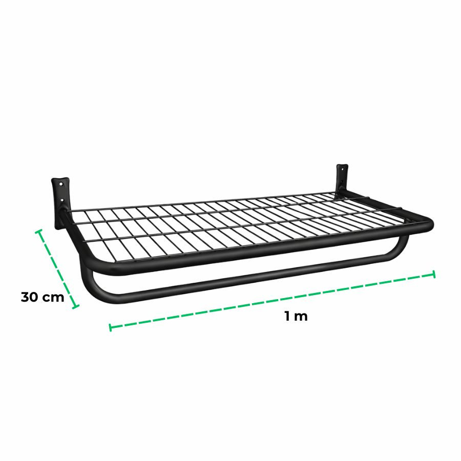 Dê um toque de estilo à sua loja com esta arara de parede com prateleira, que traz elegância e deixa o ambiente mais atraente e moderno.