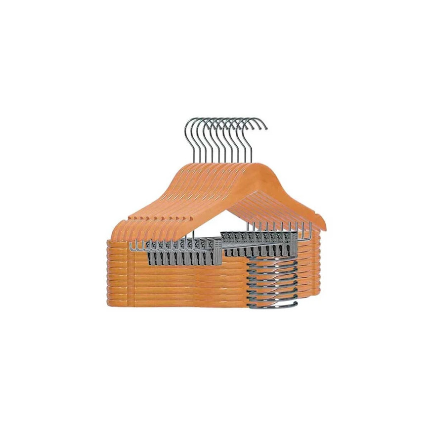 Produzido em madeira de alta qualidade, este cabide combina acabamento sofisticado com um gancho e presilhas reforçadas, garantindo durabilidade e requinte para qualquer ambiente.
