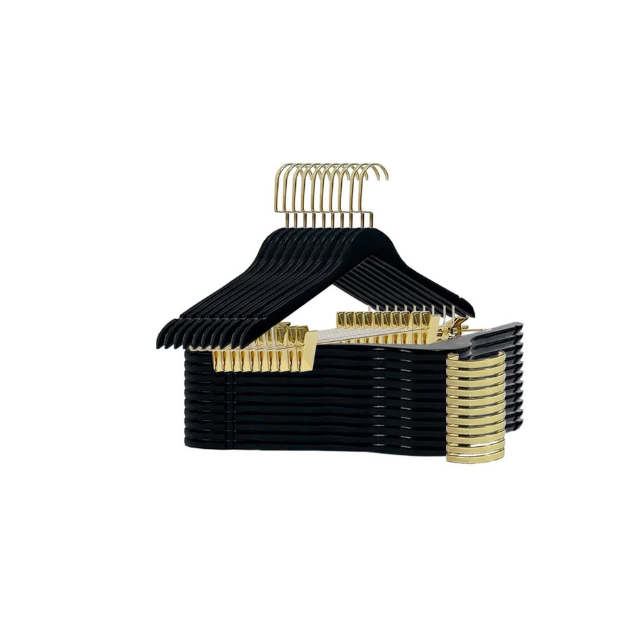 Ideal para saias, calças, shorts e peças delicadas, as presilhas com ótima fixação mantêm as roupas firmes sem danificar os tecidos, enquanto o gancho adiciona um brilho exclusivo que valoriza a apresentação em boutiques, vitrines de alto padrão e closets planejados.