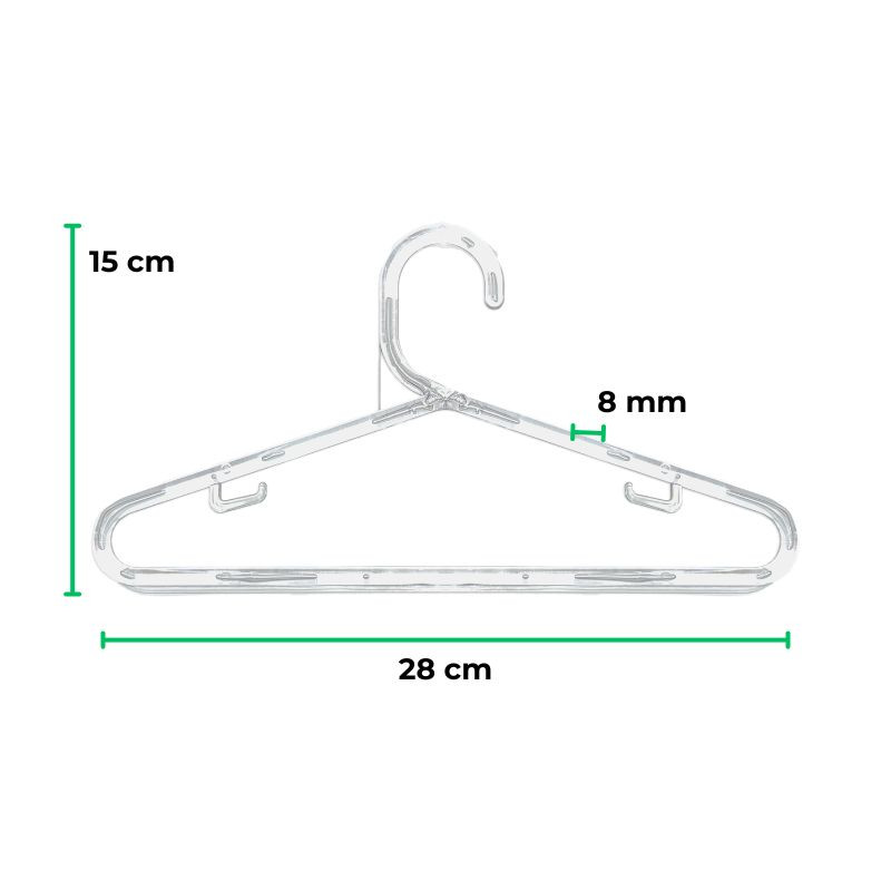Produzido em plástico acrílico transparente de alta resistência, este cabide infantil tradicional oferece leveza, durabilidade e um design clean, perfeito para manter a atenção totalmente voltada para as peças.