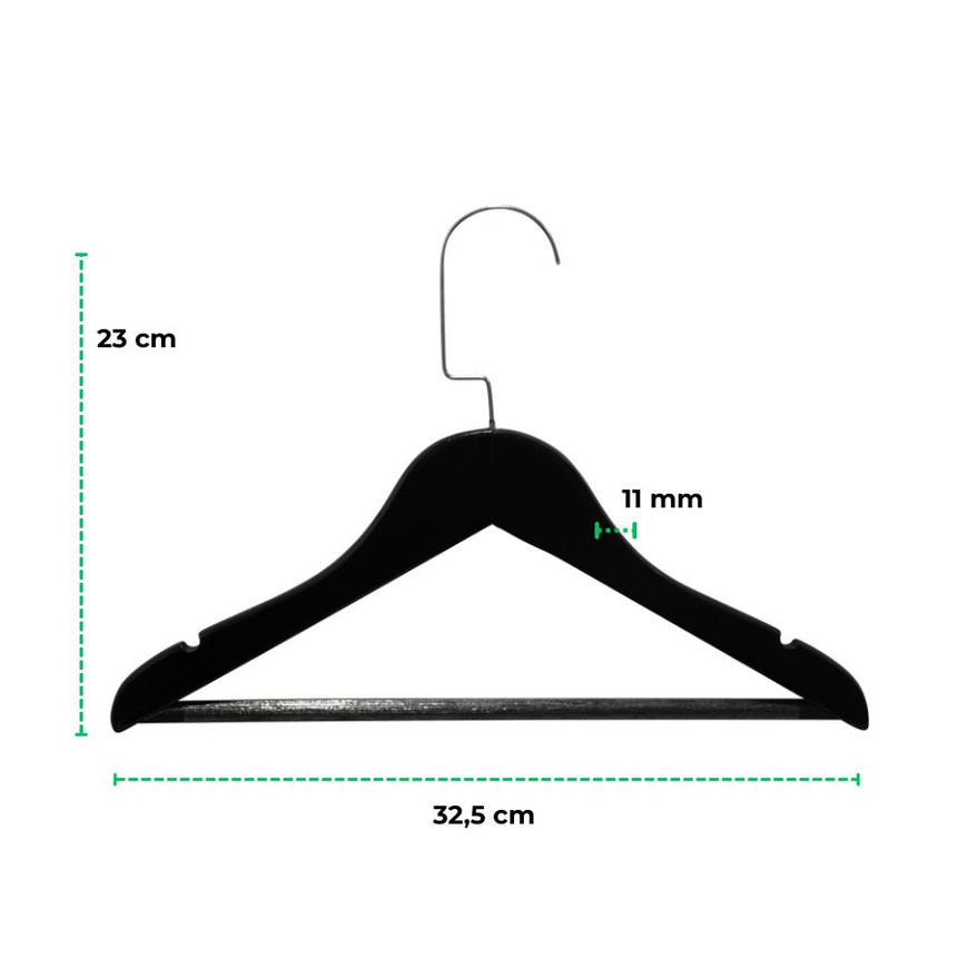 Cabide Infantil Preto de Madeira com Barra e Gancho de Luxo Cromado