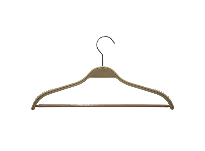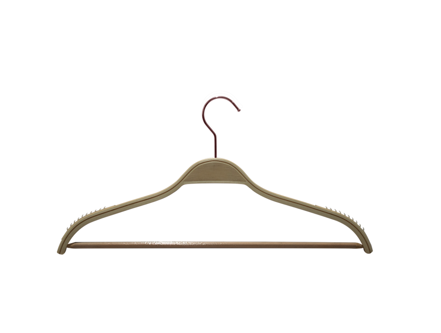 Produzido em madeira na tonalidade marfim, este cabide conta com revestimento em silicone antiderrapante, que mantém as roupas firmes sem escorregar, além de um gancho simples na cor cromado, que adiciona um toque contemporâneo e sofisticado.