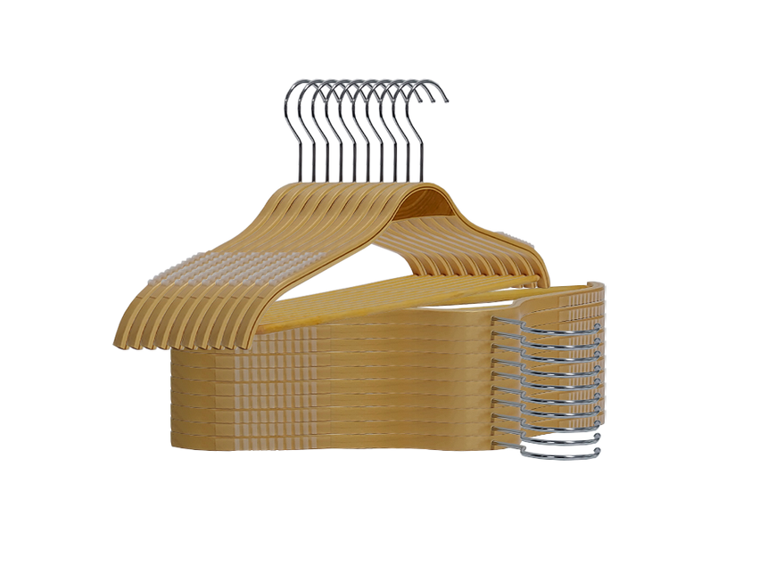 Cabide Adulto Marfim de Madeira com Silicone e Barra com Gancho Simples Cromado
