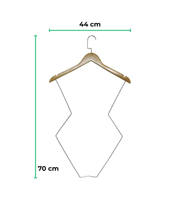 Produzido em material resistente de madeira e arame reforçado com um gancho de luxo cromado, este cabide silhueta une durabilidade, funcionalidade e um toque premium que transforma qualquer exposição em um verdadeiro destaque.