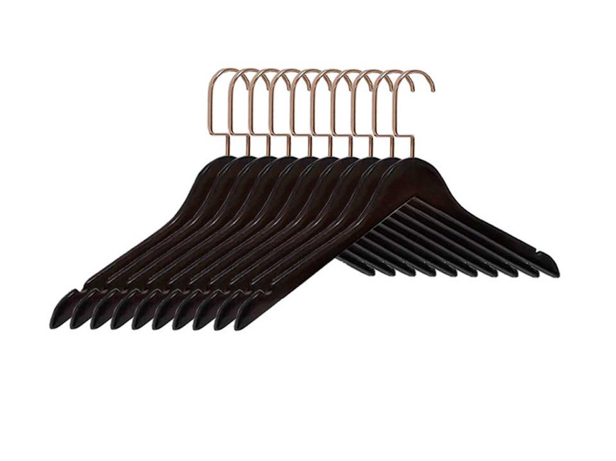 Cabide Adulto Cor Tabaco de Madeira com Gancho de Luxo com opções de 3 cores: Cromado, dourado e rosê.