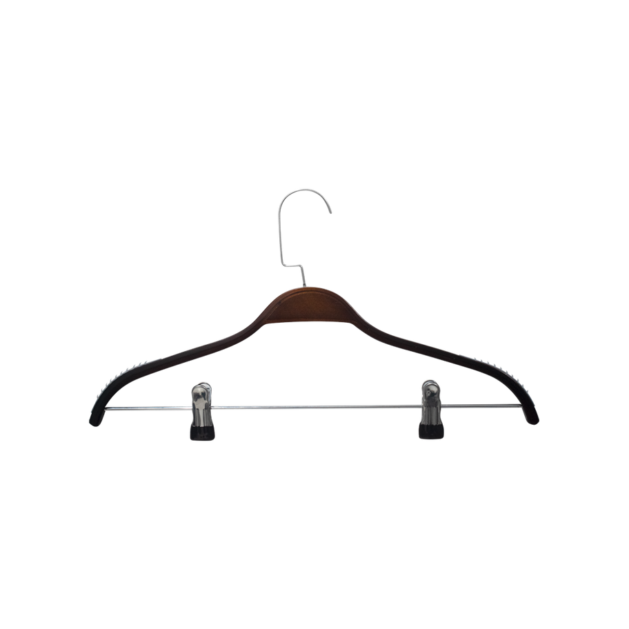Cabide Tabaco de Madeira c/ Silicone e Presilhas/Gancho Luxo Cromado
