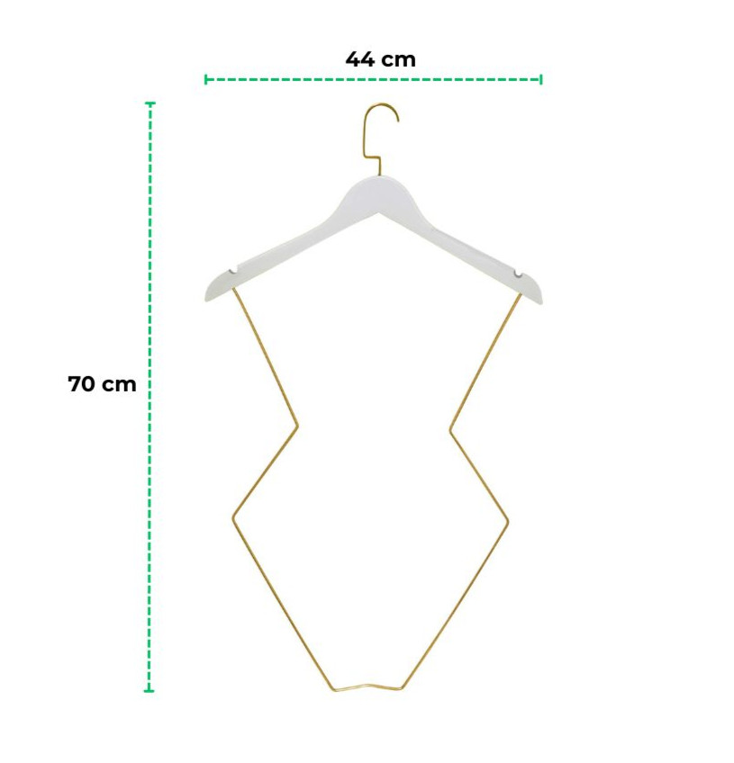 Produzido em material resistente de madeira e arame reforçado com um gancho de luxo, este cabide silhueta une durabilidade, funcionalidade e um toque premium que transforma qualquer exposição em um verdadeiro destaque.