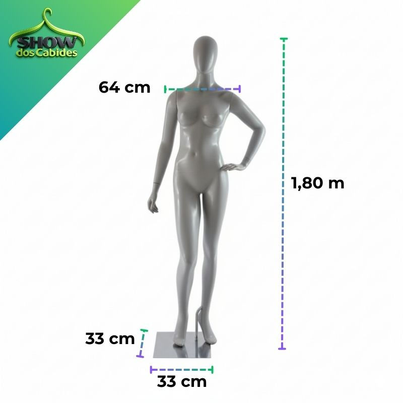 Manequim Feminino de Fibra Linha Bonita (Cor Cinza, cabeça ovo, mão na cintura)